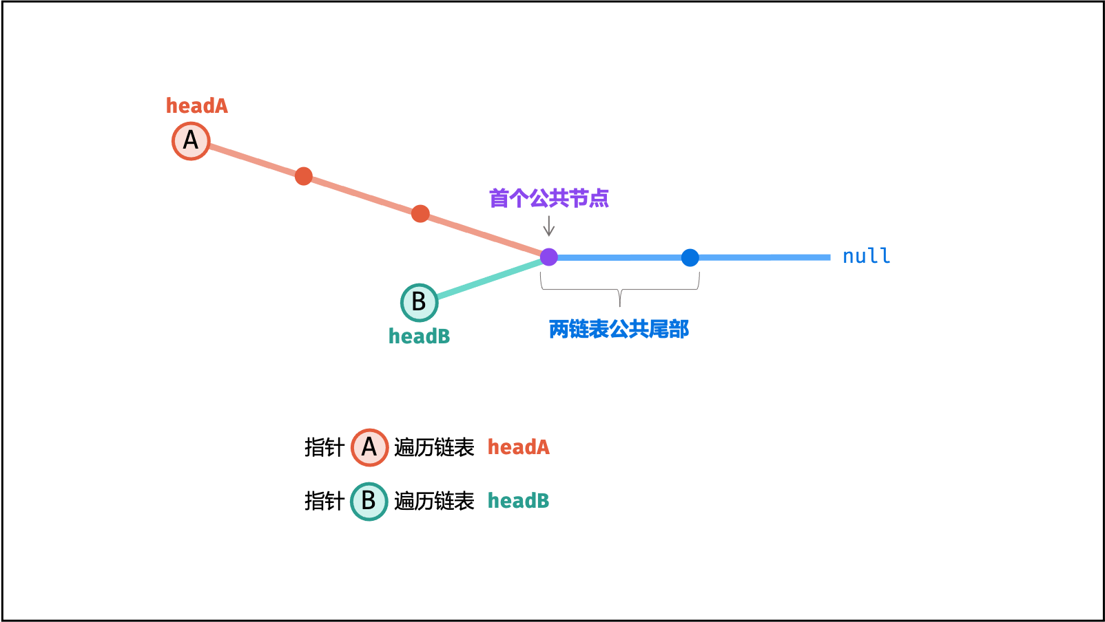 当指针B先遍历完链表B,再遍历链表A,直到第二次遇到公共节点C,一共走了b+(a-c)的距离
